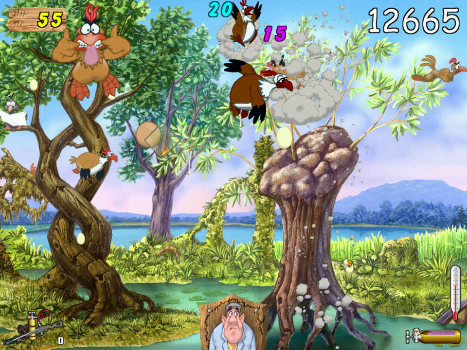CHICKEN SHOOT 2 entführt Sie in bunte Jagdszenarien und macht Sie mit zahlreichen geflügelten Persönlichkeiten bekannt. Im Classic- und Arcade- Modus oder im Wettstreit mit anderen spielerischen Gegnern: zahlreiche Wege machen den Hühnern den Garaus. Wer eine besondere Herausforderung sucht, tritt über ein lokales Netzwerk gegen mehrere Spieler an. In jedem Modus führt Sie eine reiche Auswahl an Waffen wie Flammenwerfern, Bomben und Maschinenkanonen zum Bonuslevel.