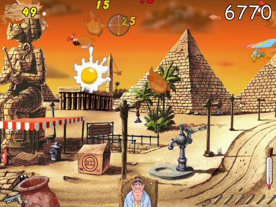 CHICKEN SHOOT 2 est un jeu de tir riche en surprises. Vous n'aurez pas le temps de réfléchir... Alors tirez dans le tas ! Dans chaque mission, vous pouvez récupérer de nombreux objets mais aussi décrocher des points bonus en cas d'action remarquables. Il est donc très facile, et notamment au cours des premiers niveaux, d'engranger un max de points, mais au fur et à mesure des missions, le niveau de difficulté montera d'un cran et atteindra son paroxysme lors des ultimes missions ! D'innombrables gadgets, conçus de façon individuelle pour chaque niveau, réserveront aux joueurs des heures de jeu palpitant !