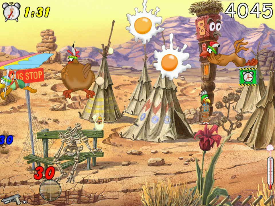 CHICKEN SHOOT est un jeu de tir riche en surprises. Vous n’aurez pas le temps de réfléchir... Alors tirez dans le tas ! Dans chaque mission, vous pouvez récupérer de nombreux objets mais aussi décrocher des points bonus en cas d’action remarquables. Il est donc très facile, et notamment au cours des premiers niveaux, d’engranger un max de points, mais au fur et à mesure des missions, le niveau de difficulté montera d’un cran et atteindra son paroxysme lors des ultimes missions ! D'innombrables gadgets, conçus de façon individuelle pour chaque niveau, réserveront aux joueurs des heures de jeu palpitant !